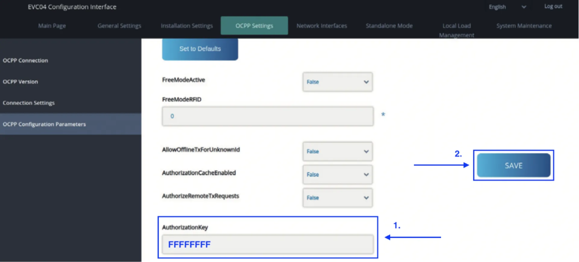 ​Step 7: Now connect your charging station to the Internet. Navigate to the section Network Interfaces and choose WiFi. Enter the following data there: